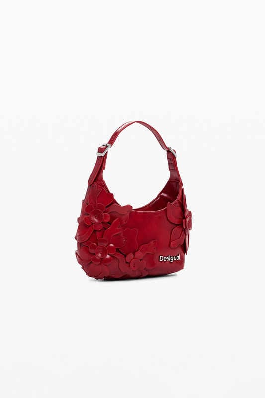 Bolso apliques flores brillante pequeño Rojo Desigual