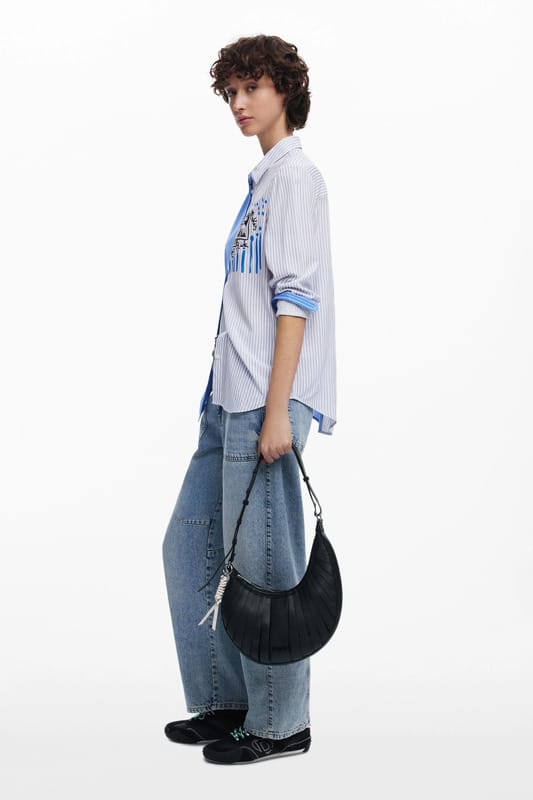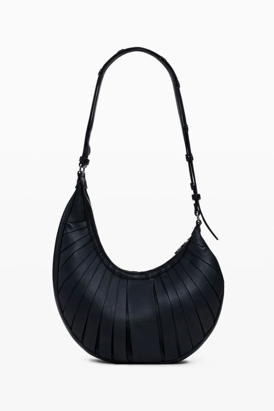 - Bolso mediano de forma asimétrica de paneles con pespuntes, asa extraíble, múltiples bolsillos interiores y Cierre: de Cremallera.
