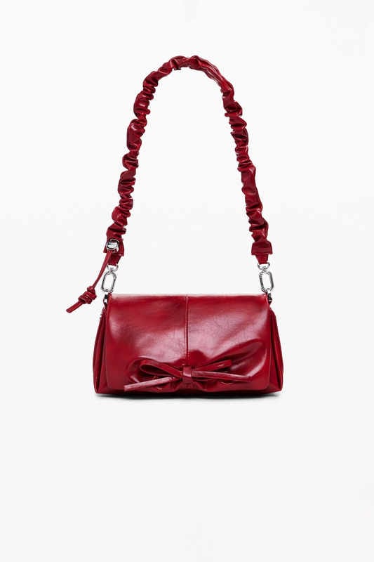 Bolso lazo brillante pequeño rojo desigual