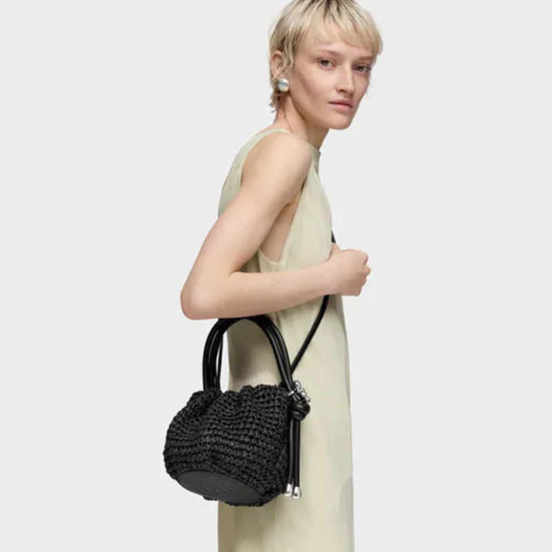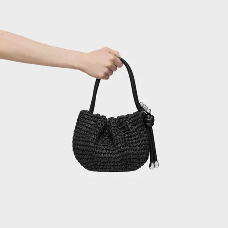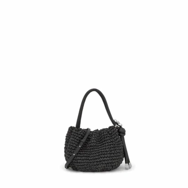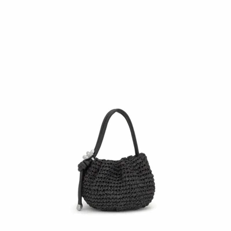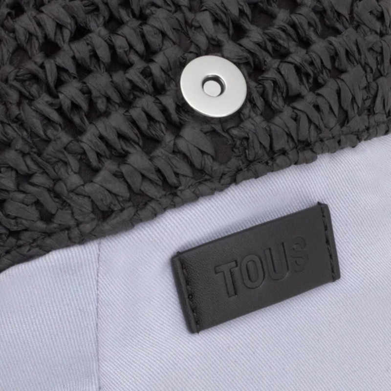 - Bolso bombonera TOUS Daisy de rafia hecha de papel y detalles de poliuretano en color negro.