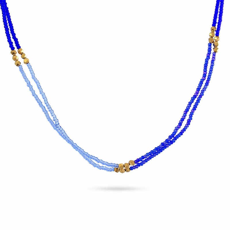 - Con un collar extra largo que combina cuentas de acero y cristal japonés en vivos colores, podrás elegir entre 9 tonalidades.