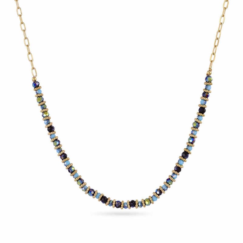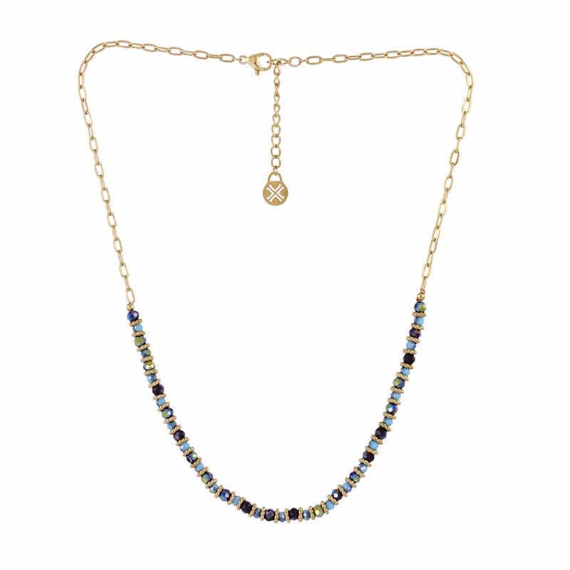 - El Collar Spirit Jolly combina una cadena corta de acero quirúrgico con cuentas de cristal coloreado en cinco tonalidades actuales.
