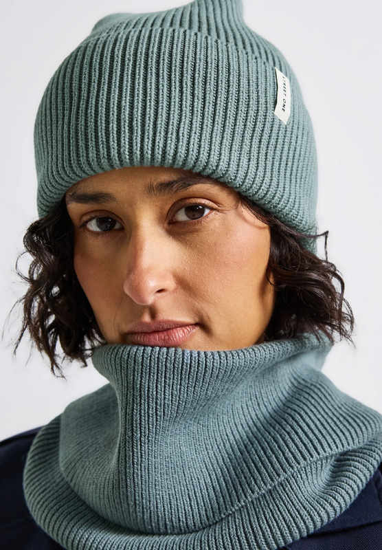 - Gorro de punto acanalado, diseño clásico tipo beanie.