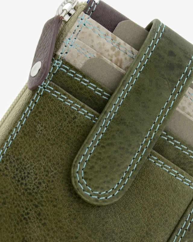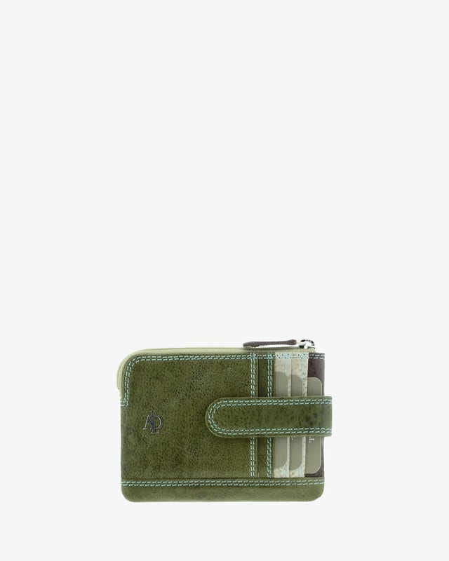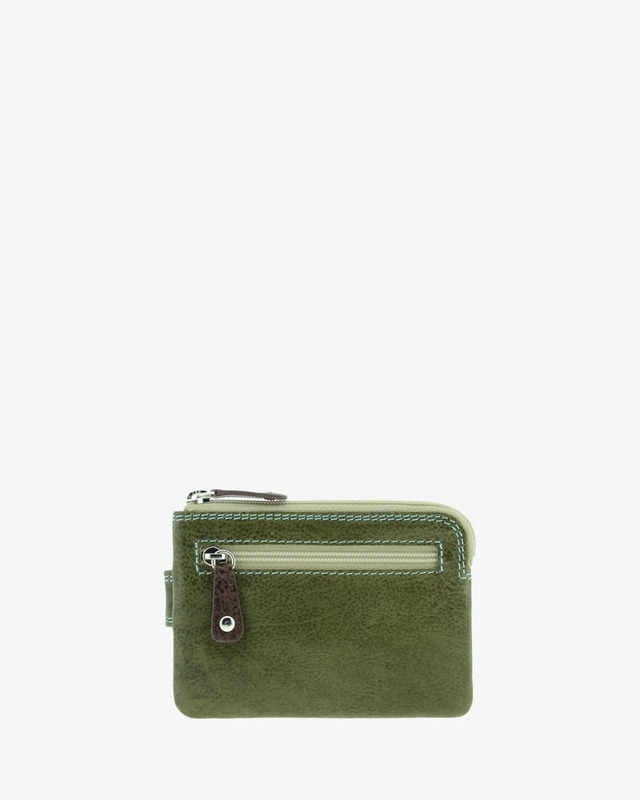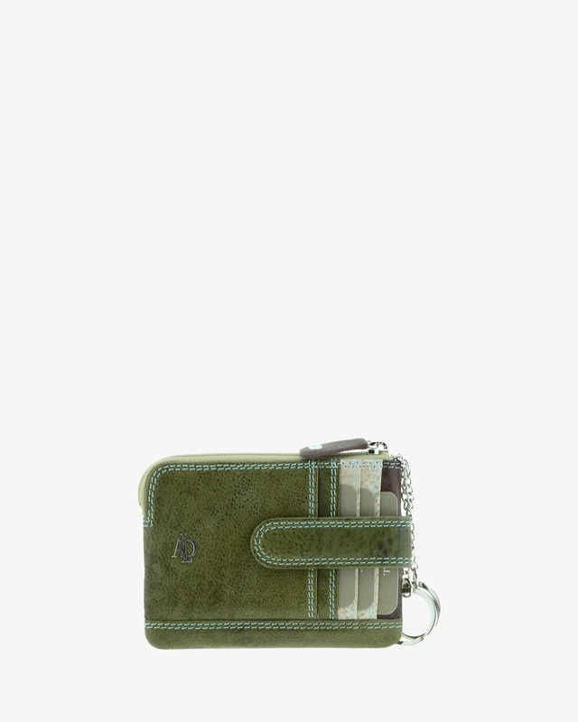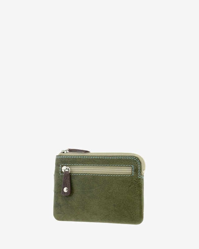 - Contiene 1 compartimentos multiuso con cremallera (billetes doblados, tarjetas, monedas, llaves), doble aro para llaves, 4 compartimentos exteriores para tarjetas protegidos por una solapa con botón y un compartimento exterior con cremallera.