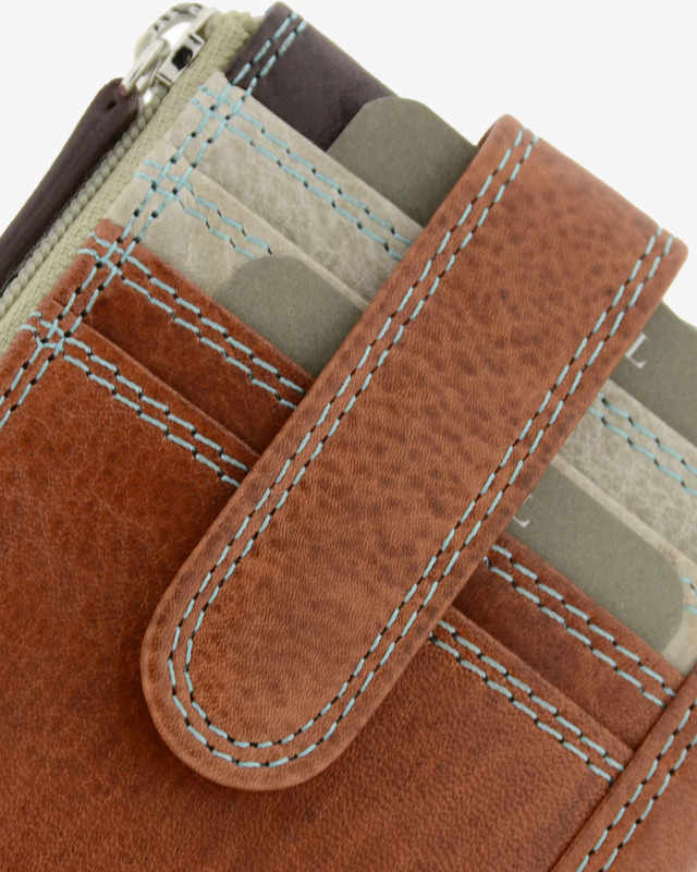 - Contiene 1 compartimentos multiuso con cremallera (billetes doblados, tarjetas, monedas, llaves), doble aro para llaves, 4 compartimentos exteriores para tarjetas protegidos por una solapa con botón y un compartimento exterior con cremallera.