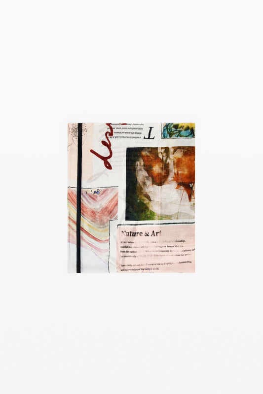 Pañuelo rectangular grande de tacto suave con estampado efecto collade de recortes de textos e imágenes.