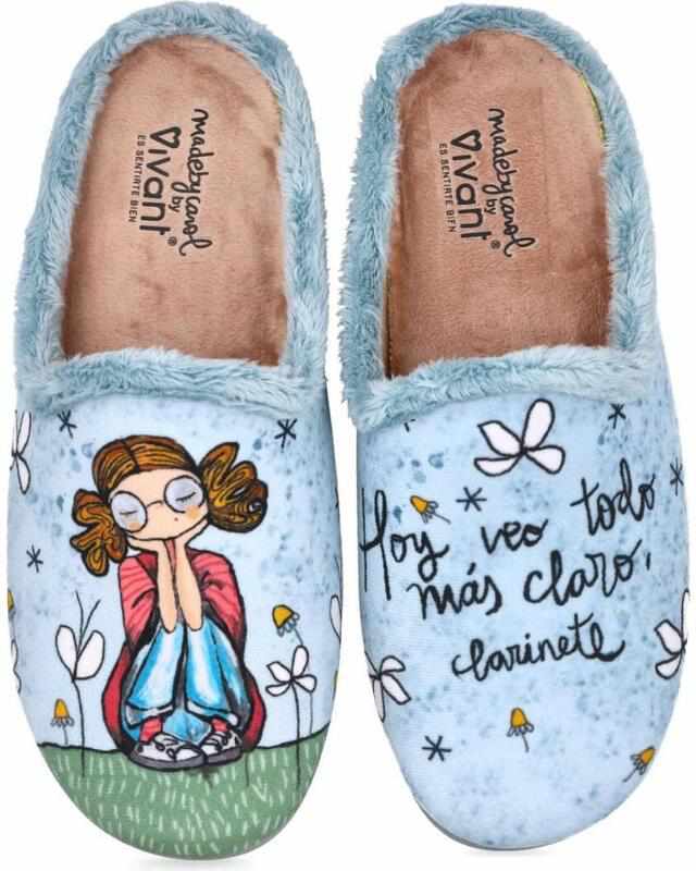ZAPATILLAS DE CASA VIVANT «HOY VEO TODO MÁS CLARO CLARINETE» CELESTE
