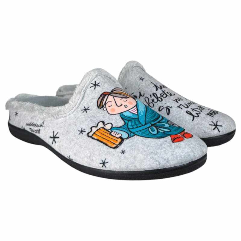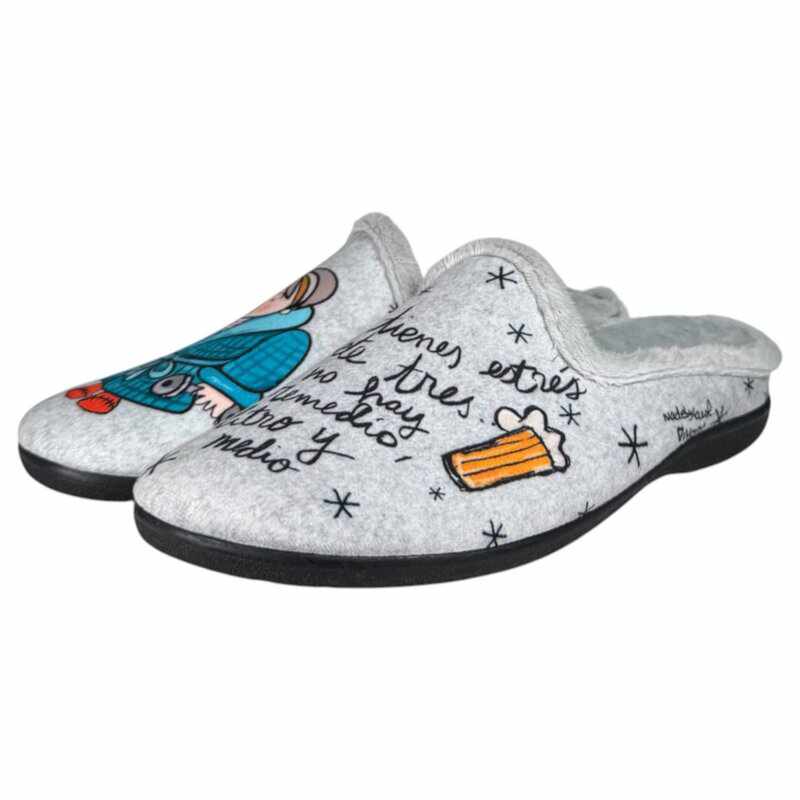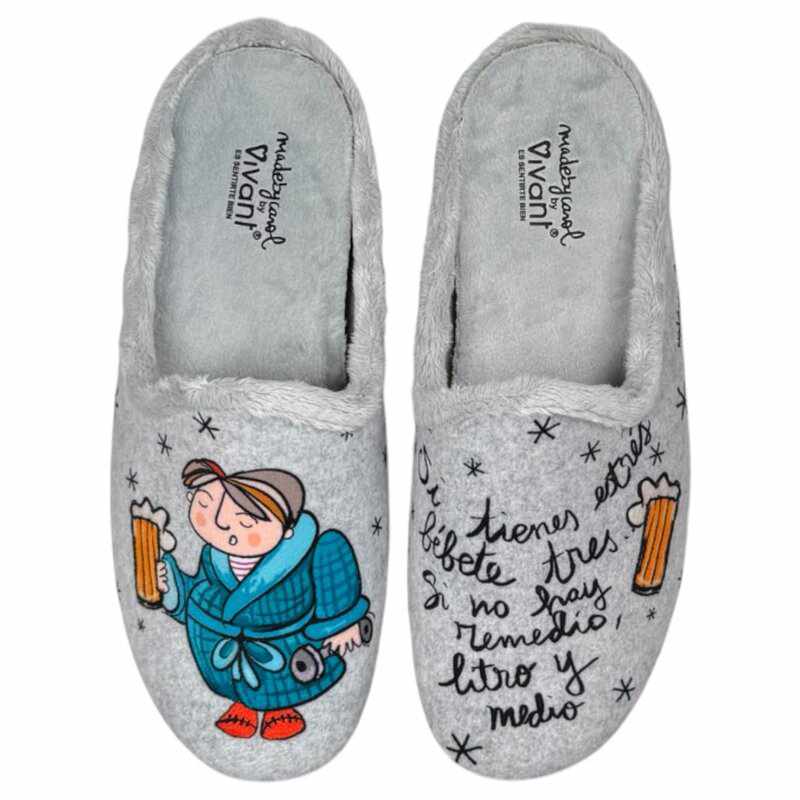 Zapatillas de Casa Vivant «Si tienes estrés bébete tres. Sino hay remedio litro y medio» Gris